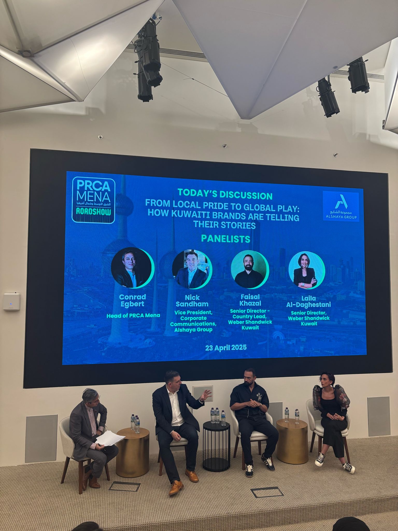 The panel discussion, titled “From Local Pride to Global Play: How Kuwaiti Brands Are Telling Their Stories” included Nick Sandham, Vice President, Corporate Communications, Alshaya Group, Faisal Khazal, Senior Director – Country Lead, Weber Shandwick Kuwait, Laila Al-Daghestani, Senior Director, Weber Shandwick Kuwait and Conrad Egbert, Head of PRCA Mena.
